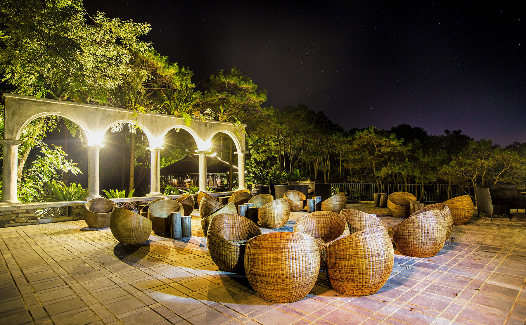 Cách Hà Nội 55km, Melia BaVi Mountain Retreat là resort  ẩn mình trong khuôn viên của rừng quốc gia Ba Vì và chẳng cần đi đâu xa, bạn cũng có thể tận hưởng khí hậu 4 mùa trong một ngày vô cùng rõ rệt. Nằm trên độ cao 600m trên mặt nước biển, được bao phủ xung quanh là thảm thực vật đa dạng, Melia BaVi được xây dựng trên nền các phế tích cổ từ thời Pháp thuộc. Nếu đã từng đến đây, bạn sẽ nhận thấy phần móng của các khu nhà, biệt thự đều được xây dựng trên các trụ đá – các phế tích của các công trình kiến trúc mà người Pháp đã xây dựng trước đây để phục vụ cho các tướng lĩnh cấp cao nghỉ ngơi, tránh cái nắng oi ả của mùa hè.